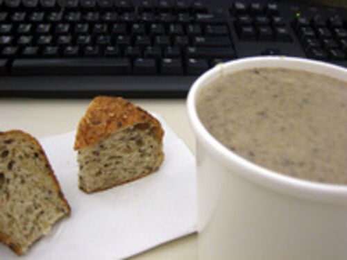 今日のランチはマッシュルーム・クリーム・スープ。日本風に表現するとポタージュとなる。 カフェテリアのスープにはパンやクラッカーがついてくる。そのパンはバゲットだったりフォカッチャだったりハラーブレッドだったりと日によって色々。今日はわたしの…