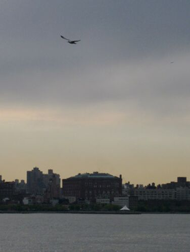 厚い雲に覆われた朝。気分もグレイになるところだが、ハドソン川の対岸に少し明るいスポットがあったので、その分だけ気分があかるくなりカメラを取り出して撮影。カモメが気持ち良さそうに空を滑空していてヴュー・ファインダーに入ってきた。その分だけ気…