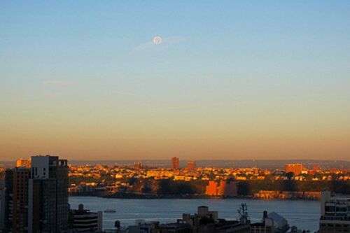 コーヒーをセットし、シャワーを済ませ、窓から外を見たら、西の空に大きな丸い月が浮かんでいた。 モーニング・グローリー(朝焼け)と満月の組み合わせは、前日に皆既月食を見られなかった事の埋め合わせがなされた感じ。